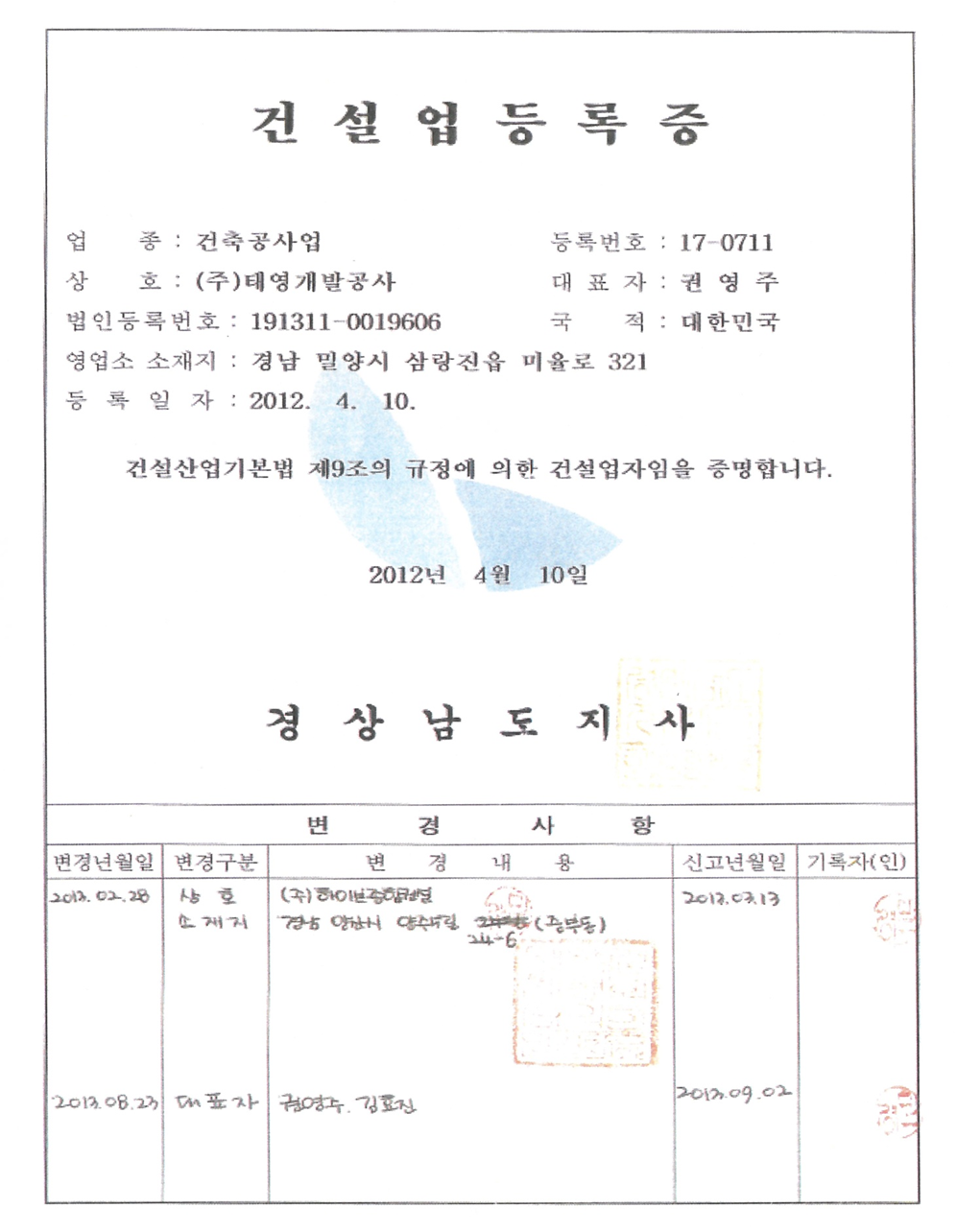 면허 및 인증 | (주)태영개발공사 | (주)태영개발공사
